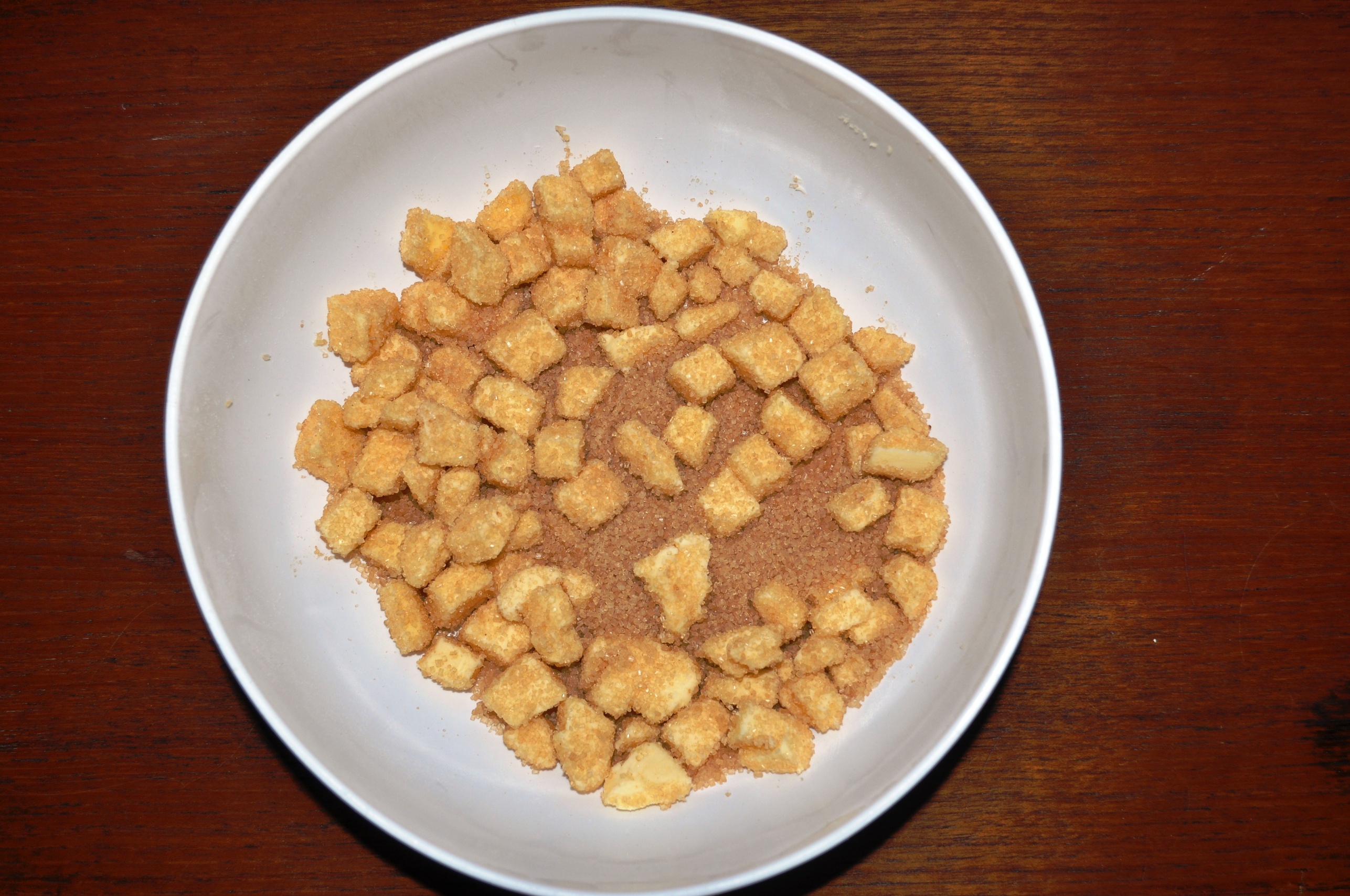 8. Cut the butter into small cubes, and mix with the Demerara.