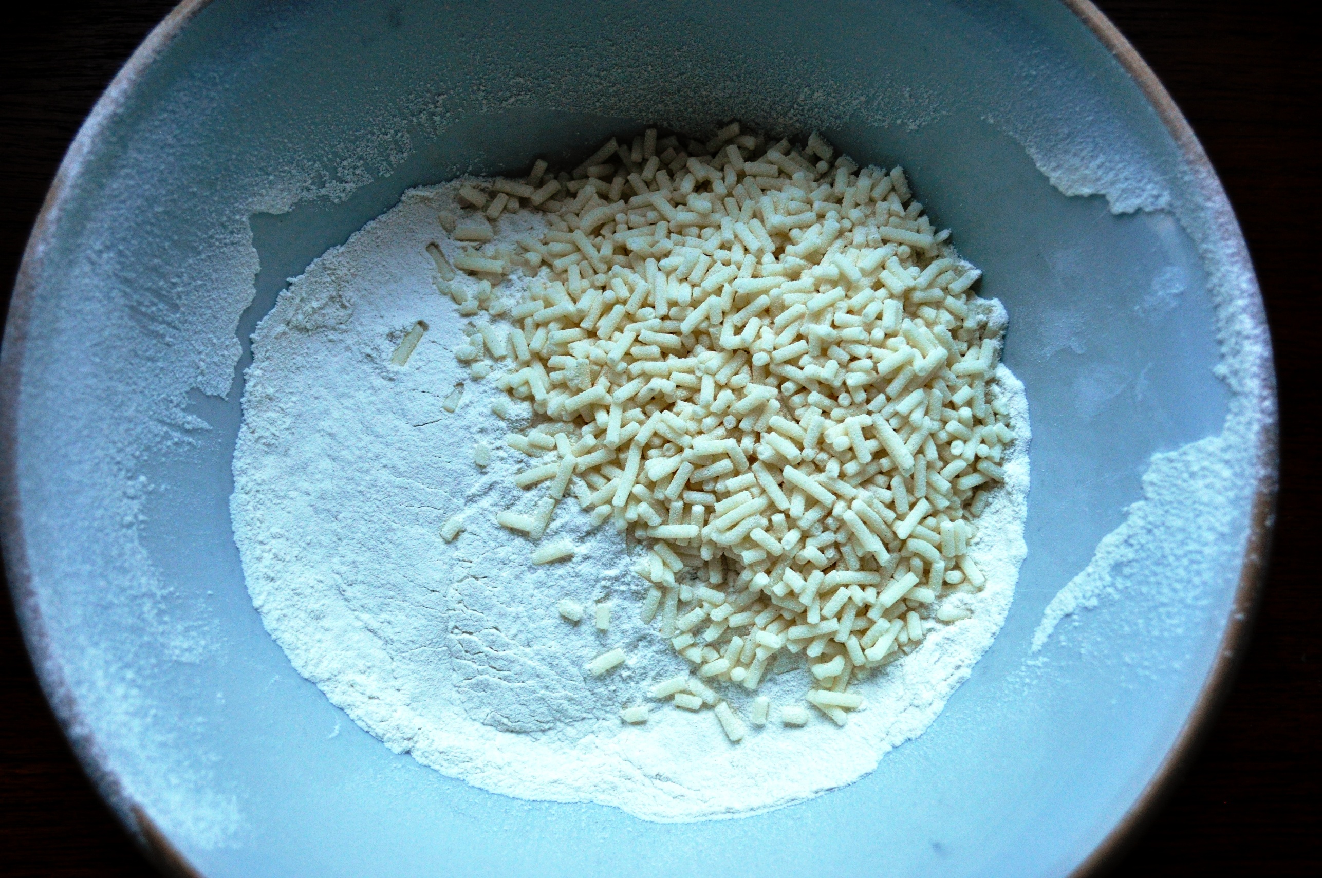 9. Put half the butter and sugar mix in the basin.