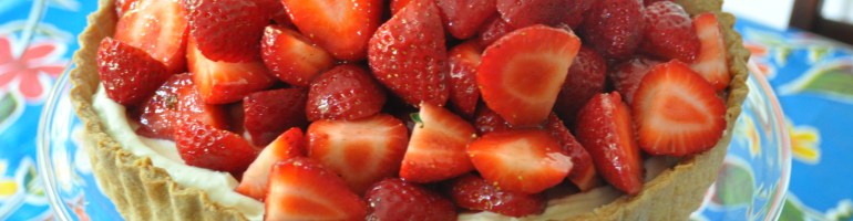 I was planning to use the goosebrrries, a fruit I ate a fair amount as a child but haven’t touched for years, if not decades, for a tart yesterday, when we had friends visiting for lunch, but decided they weren’t quite ripe (the bush is in a very shady spot). Instead, the farmers market had a stall loaded with (ripe) gooseberries, cherries, strawberries and tayberries. I hadn’t encountered the latter before, but they’re a common blackberry (Rubus fruticosus)/raspberry (Rubus idaeus) cross. We bought a punnet, but mostly we bought strawberries as I’d seen a handsome looking recipe in Dan Lepard’s ‘Short & Sweet’. Another version of his recipe is available here on the Guardian.