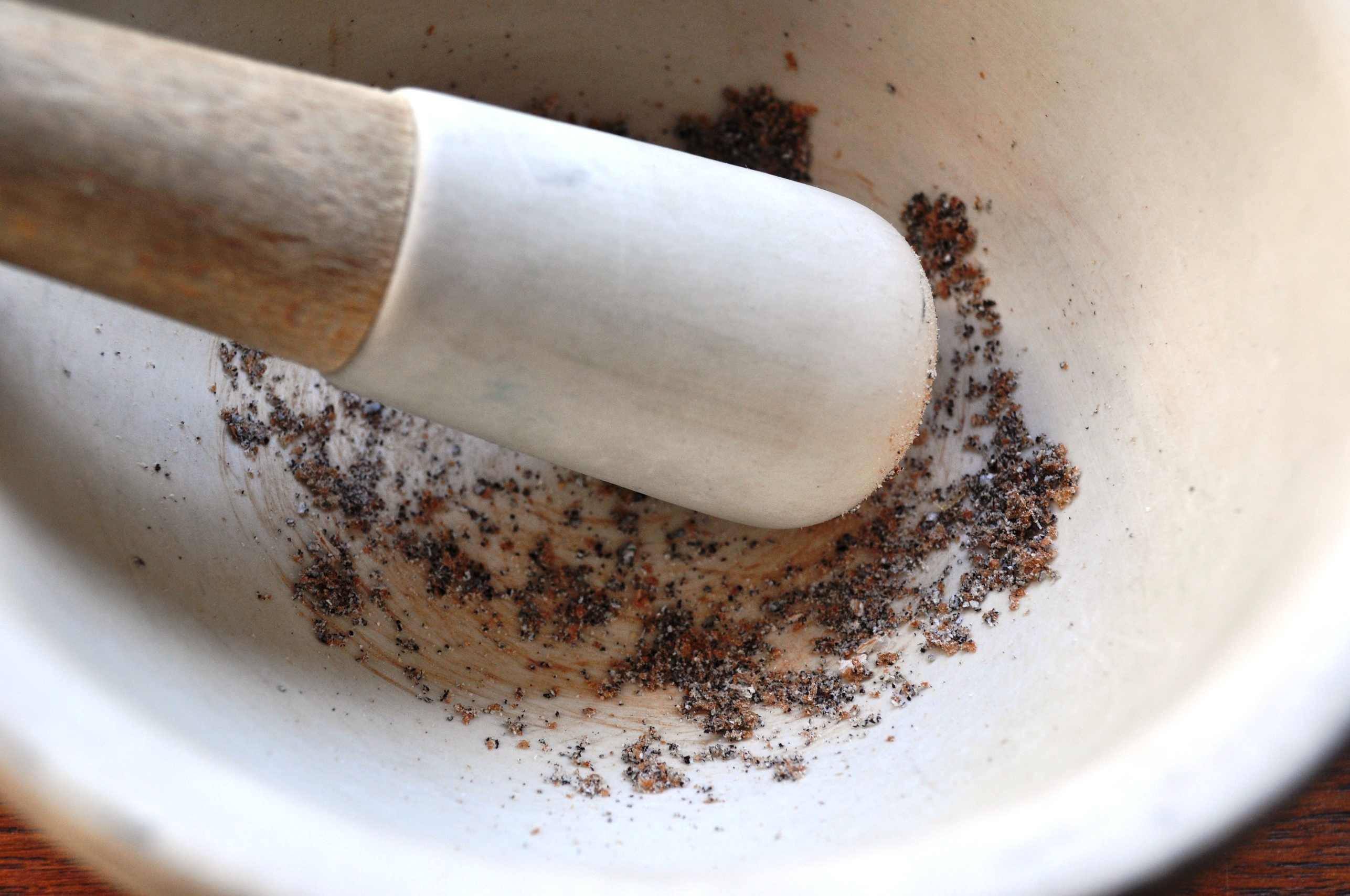 1. Crack open a few green cardamom pods and grind the seeds to a powder in a pestle or mortar or spice grinder.