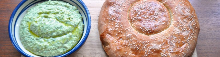 Enjoy. Perhaps with some dips. As with the LA peda bread, I’ve been eating mine with a hummus-substitute made with English grown pulses from Hodmedod’s. I used split dried fava and wild garlic. So much wild garlic at the moment. I love the stuff, but it is a tad pungent, especially when it’s included in every meal for several days running…