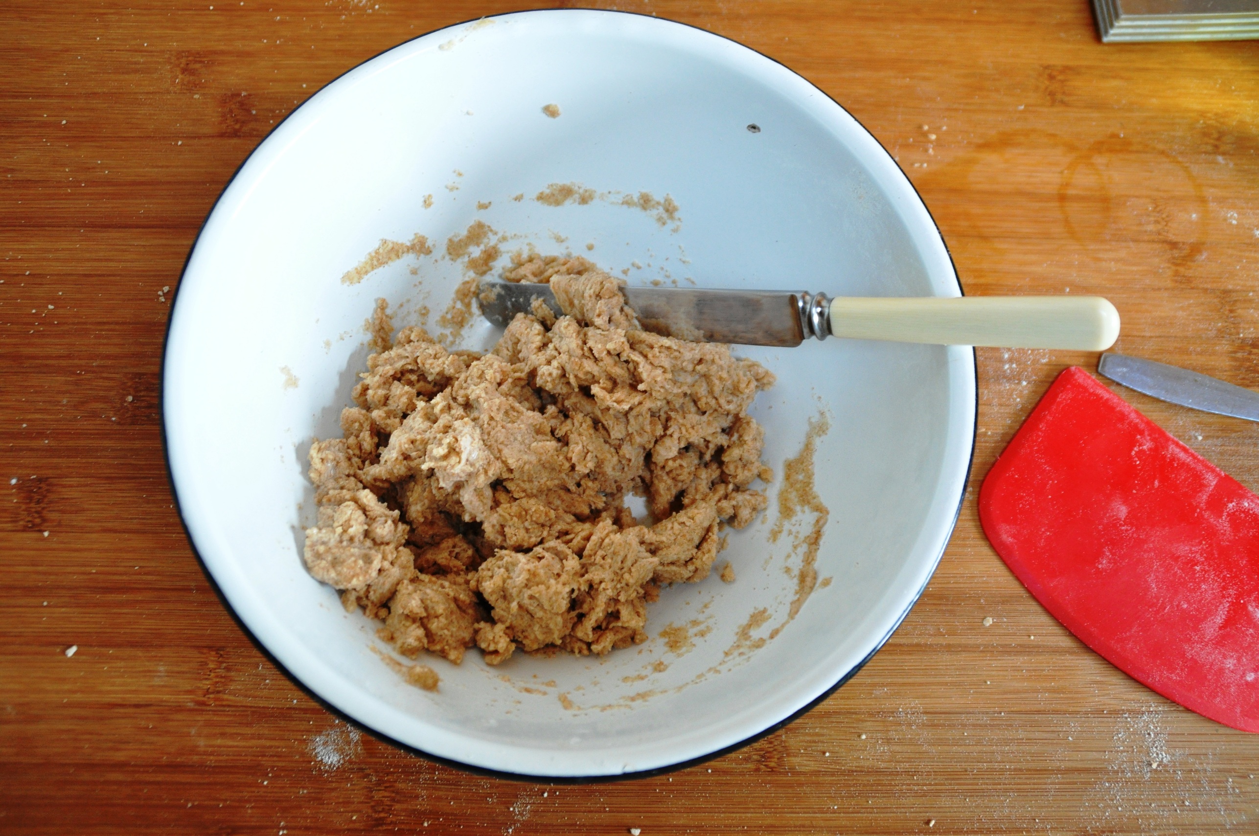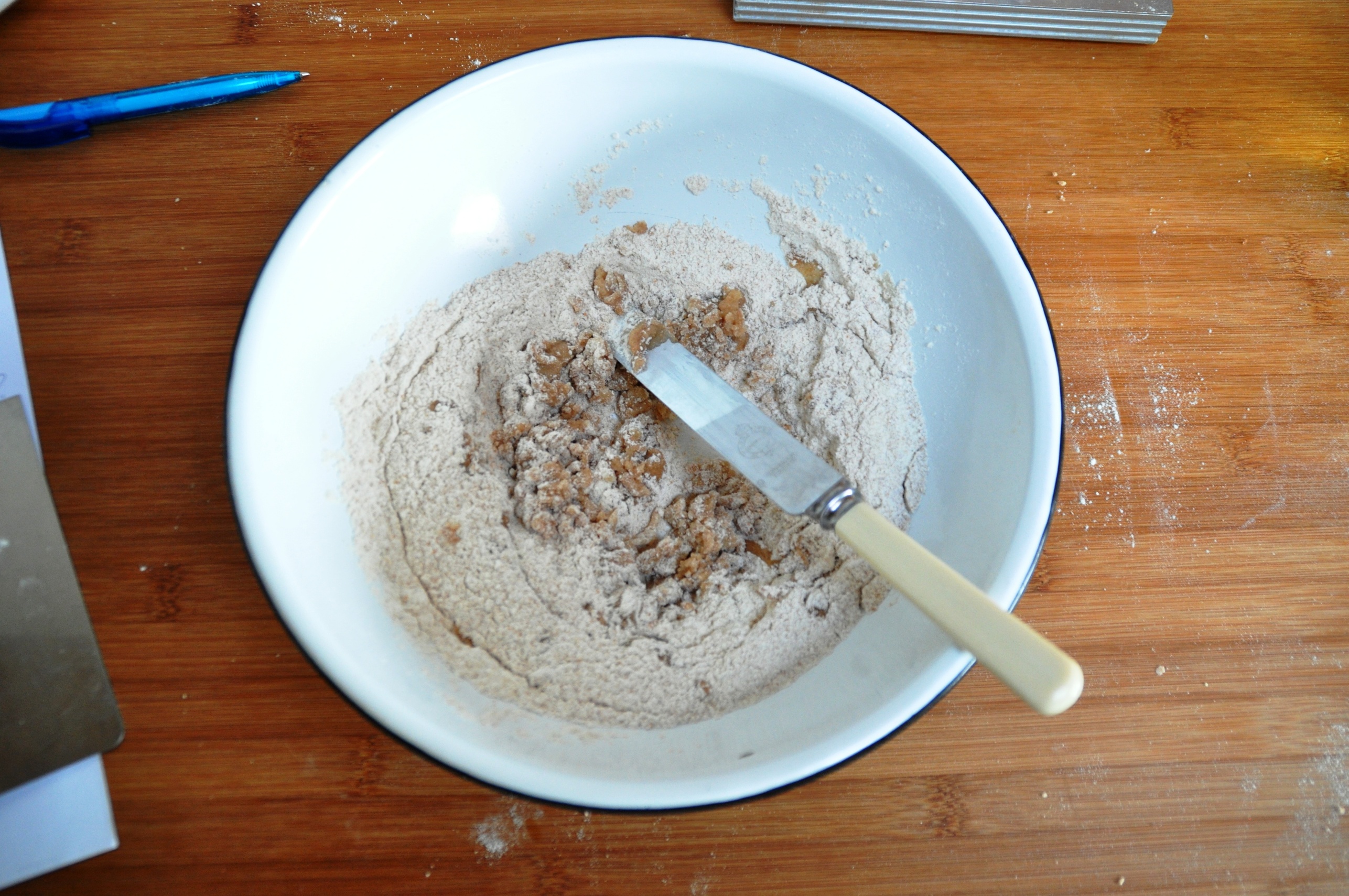 2. Add the oil or fat and combine. If you’re using a solid fat, crumb in it. Either way the result will be crumb-like.