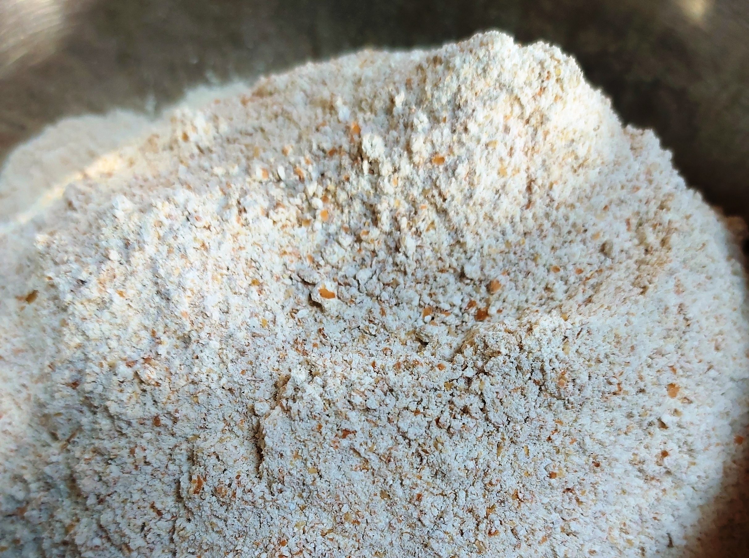 2. Sieve together the flour and baking powder, then add this to the yeast mix.