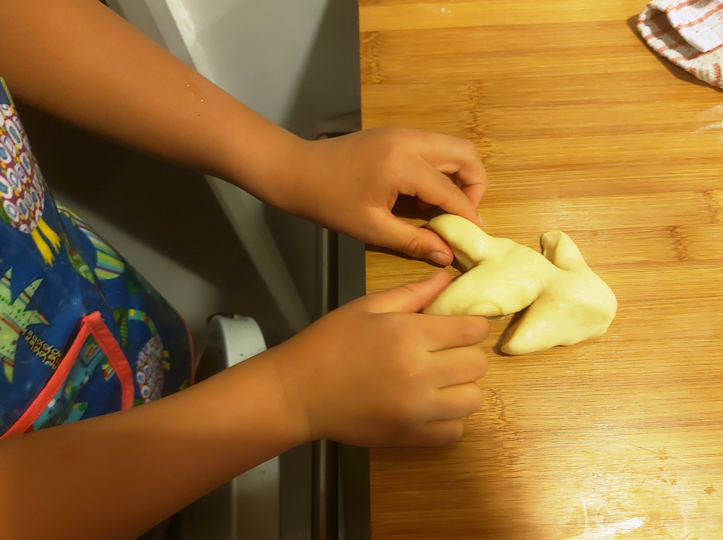 9. On a lightly floured surface, roll out the dough to a rectangle around 30x60cm (grab a tape measure!), moving it around frequently to stop it sticking.