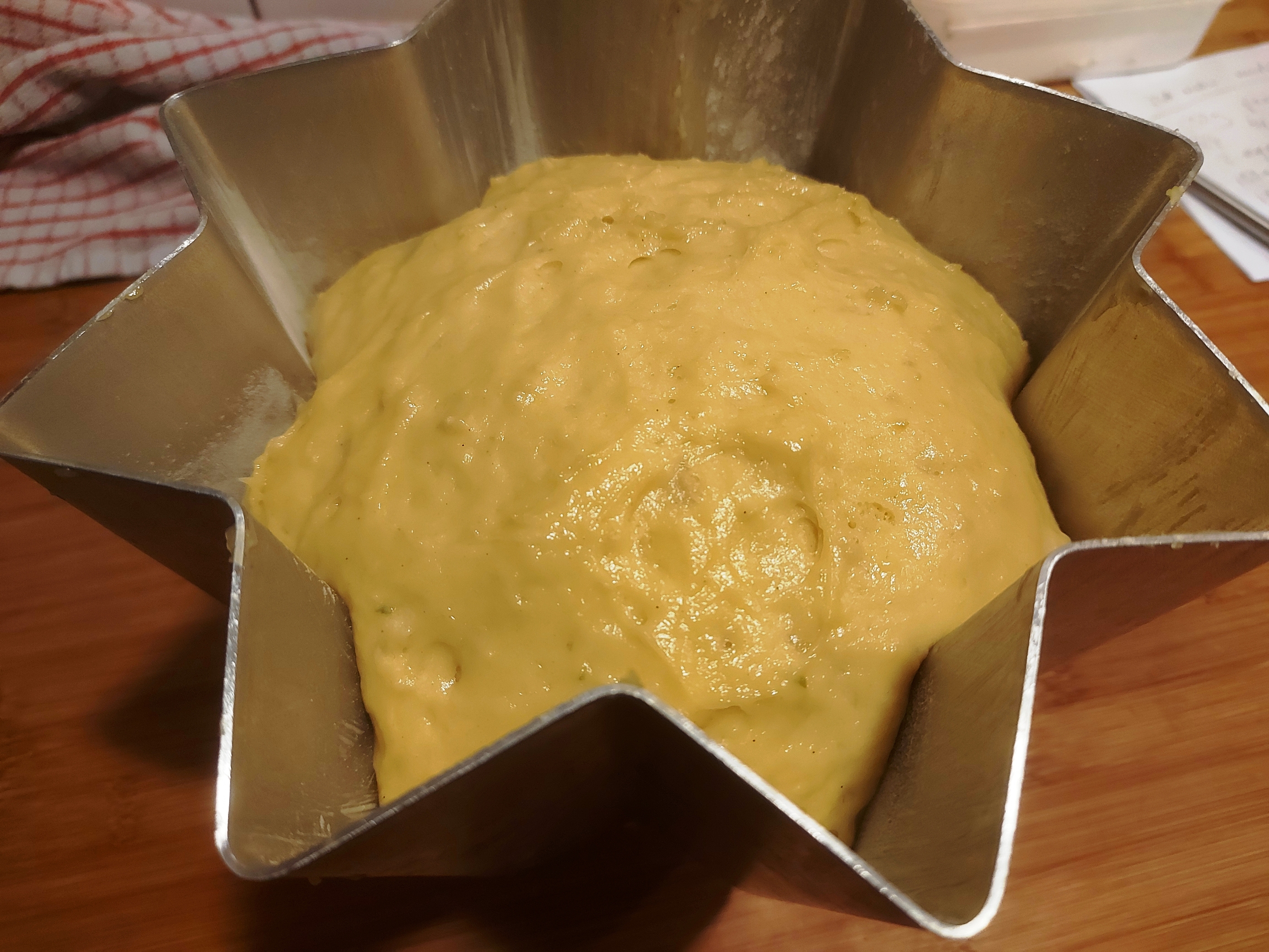 This recipe and process is similar to my brioche; the key difference is that Roman does a cold mix to start. This seemed to not give the chance for the yeast to activate at all, and for the final prove, there didn’t seem to be much vigour. Another misgiving was the inclusion of baking powder. I believe baking powder works in two ways: it activates with moisture then with heat. So surely during this recipe’s long prove, it would be activated, and the resulting CO2 would dissipate? So you’re only getting the heat reaction and the CO2 that results from that. Having said all that, the oven spring* was good, and the resulting dough was light when freshly eaten, so all good. As I said, reliable recipes. Thanks, Ms Roman.