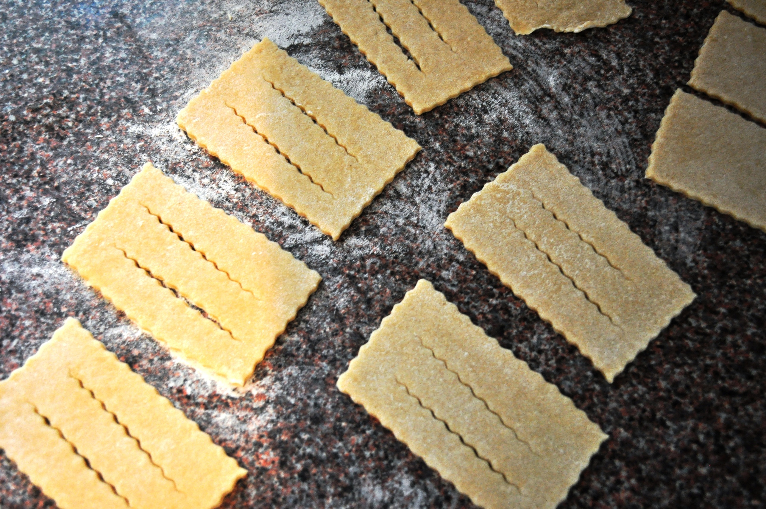 So really, it’s just a pretty basic egg pasta – with the familiar ratio of 1 egg to 100g flour. Though with a little added sugar and some lemon zest.