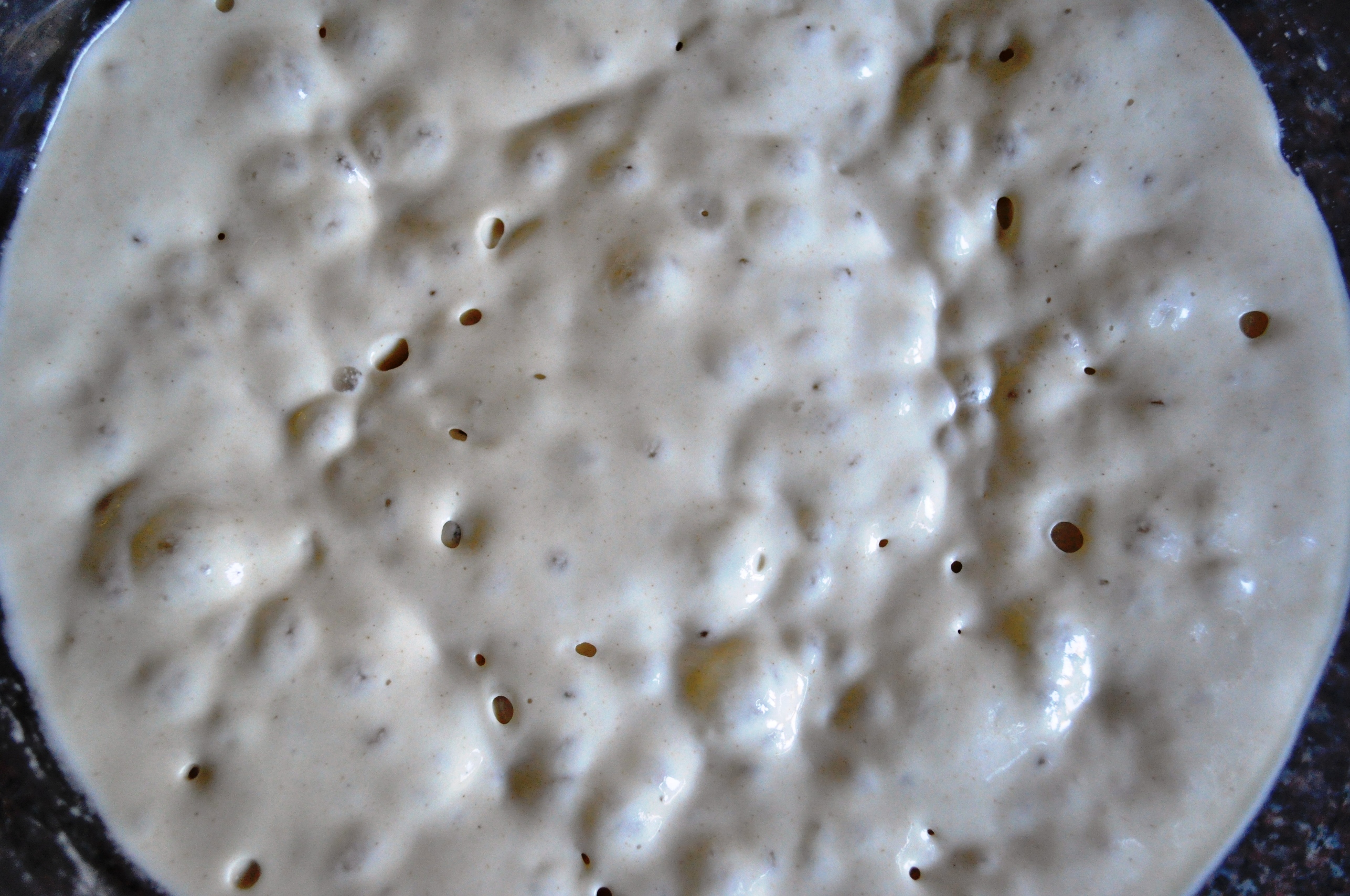 6. When the dough is starting to get quite thick, bring the rest of the flour into it by hand.
