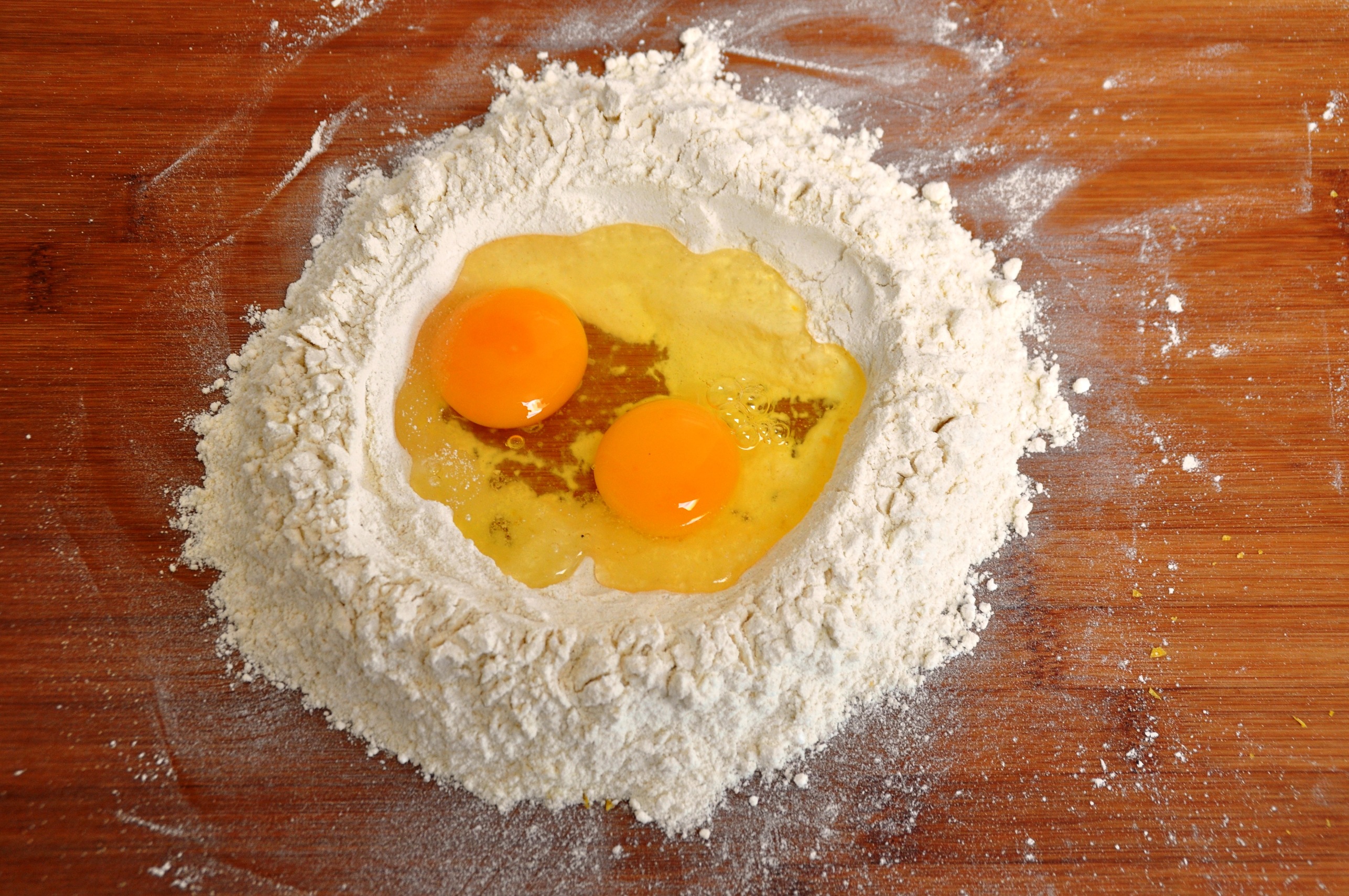 Also, the pasta does seem to have been traditionally made with strutto – lard. Now, I don’t have a problem with lard in principle, as I do eat some meat and as it was a key ingredient for older, traditional British baking (such lardy johns, or the more well-known lardy cake). The thing is, I try to only eat meat where I know the provenance, and generally that means from people we trust who have a farm nearby. I hoped they’d do some lard, but they just don’t have the demand. Instead, the only readily available lard in small-town England is foul crap spat out by the grotesque industrial meat machine, and I don’t want to use that. Instead, I’m going for all eggs, which some of the Italian recipes I researched also did.