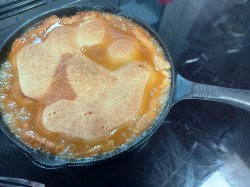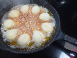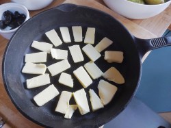 Here, I sautéed down a finely sliced onion in some wild garlic butter and oil, added loads of black pepper and a good pinch of ground up dried chillies (the last of last year’s crop) and briefly wilted down the coarsely shredded weeds – about three large handfuls of the garlic, jack and dandelions leaves. Stinging nettles (Urtica dioica) would also be good, but the usual patch in my garden hasn’t appeared this year and I forgot to grab any on our walk. Then I beat three eggs and added some chunks of feta and hard goats cheese, as well as a nice teaspoon or so or za’atar. As I said – somewhat freeform. Combine the egg mix with the weed mix.