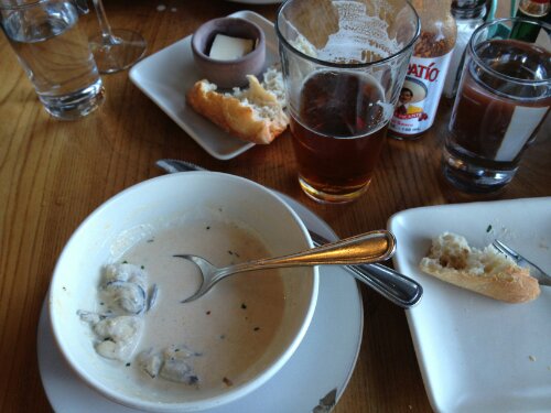 Our seafood tasting plate was stupendous – simply cooked, no nonsense, nice sauces, and couldn’t be fresher. The crème brulée and huge biscotto wasn’t half bad too. All in all a great day.