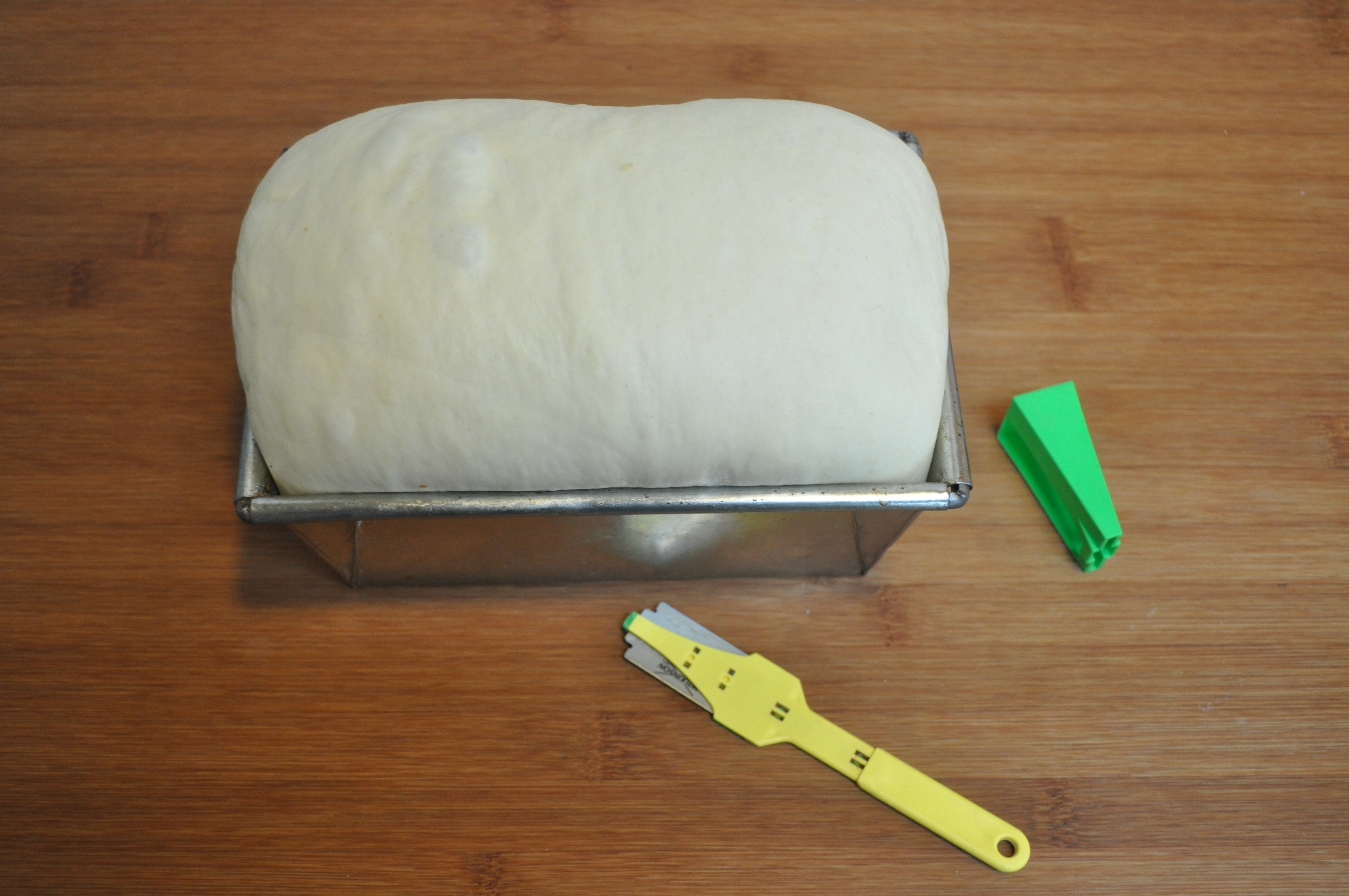 8. Take out the dough and weigh it. It should weight about 790g. For six small loaves, divide it into six pieces, each weighing about 130g.