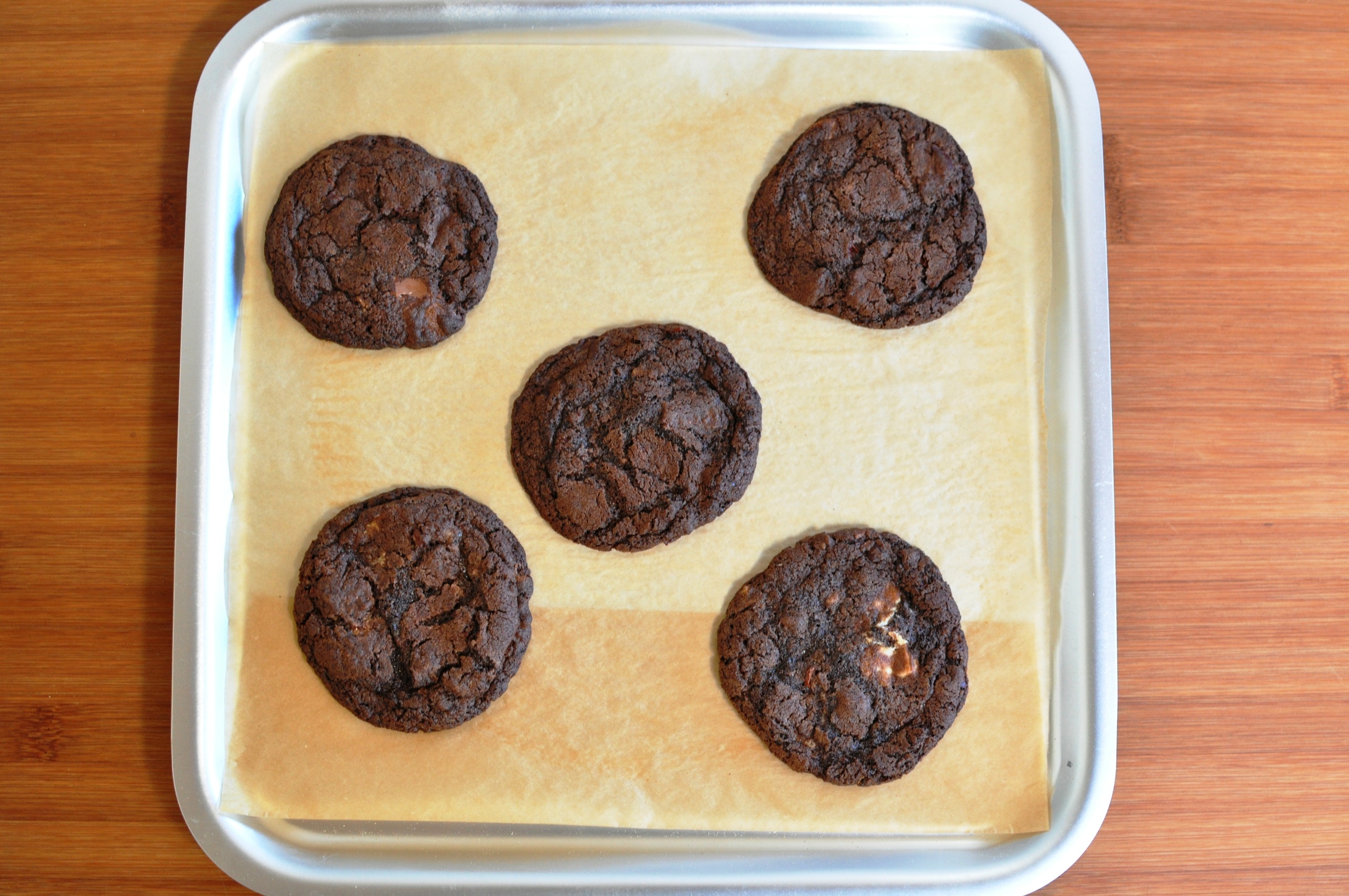 An article in the New York Times in 2008 asserted that this improves the quality of the finished cookie, allowing the flour to soak up the liquids and fats. Felicity Cloake in the Guardian did her own tests on this and said the dough kept longest in the fridge (48 hours) resulted in a more “caramelly” cookie, while those kept 12-24 hours had a preferable texture. I’m not entirely convinced though, especially when you’re adding cocoa powder to the mix.