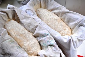 10 Shape batons, then place then in proving baskets lined with floured clothes, or if you ain’t gone none, place side my side on floured clothes, covered.