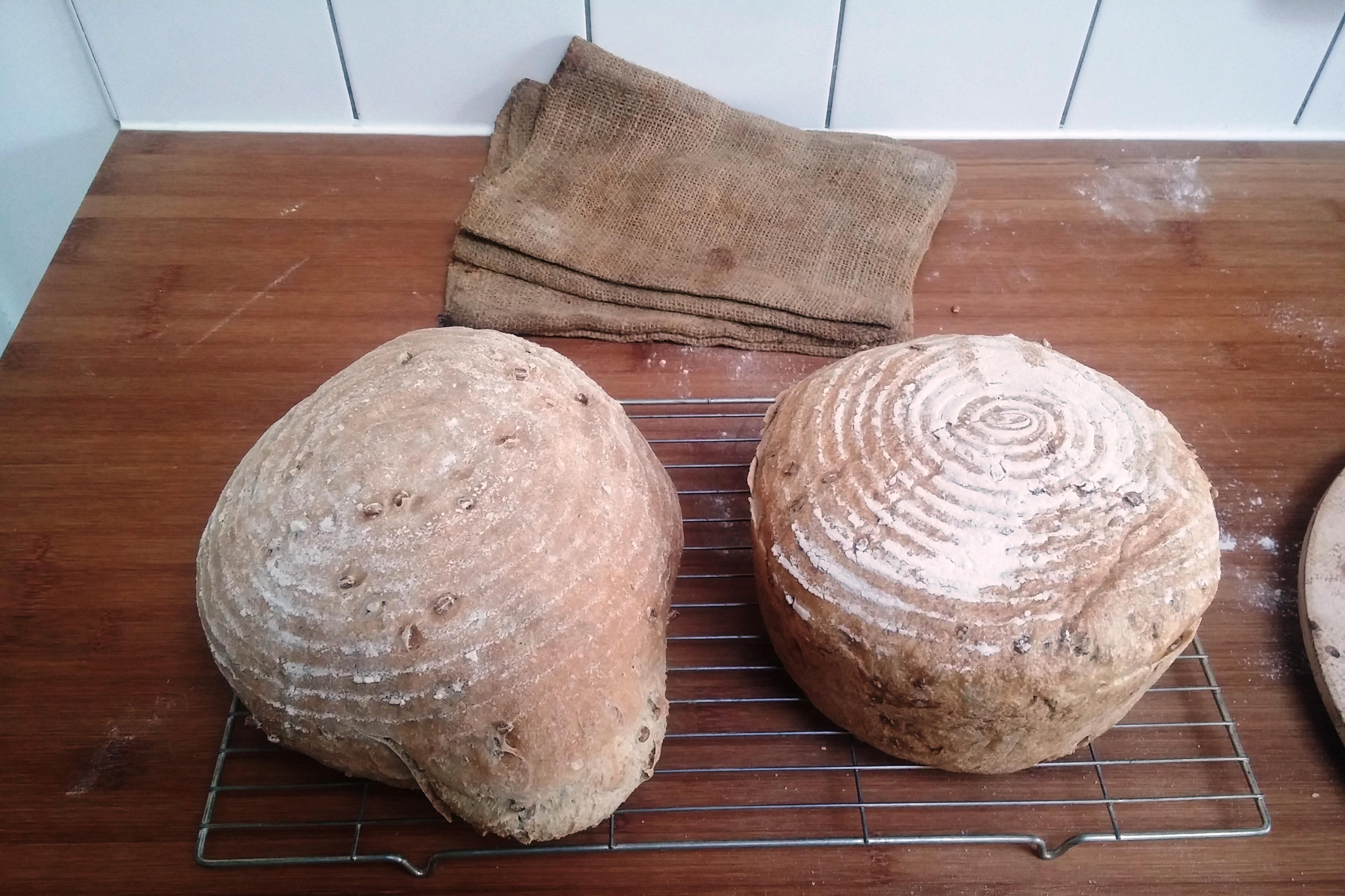 After breaking the camera, both pieces of dough were scaled at the same weight, both were moulded the same way, and both were given their final prove in round bannetons.