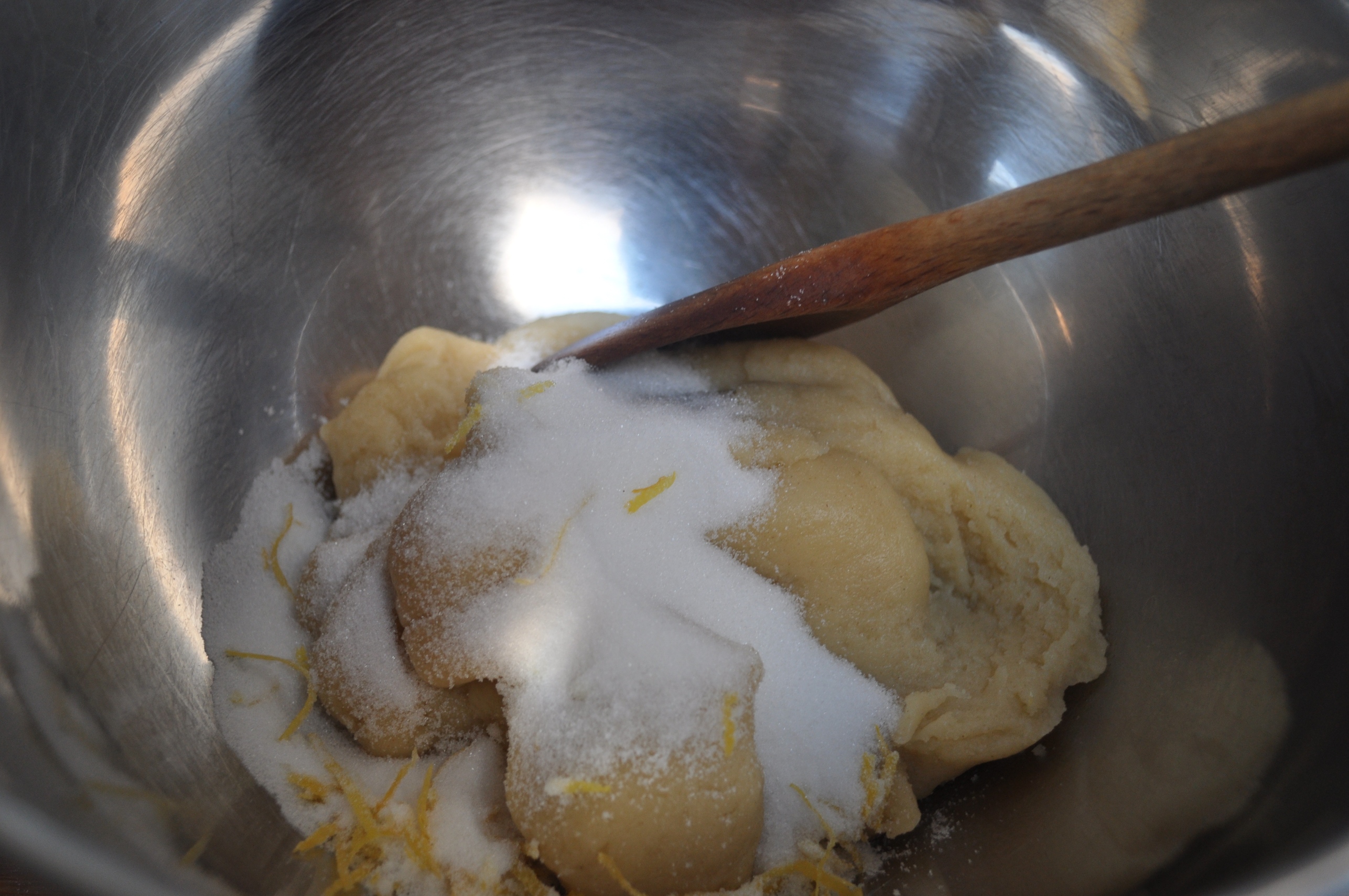 5. Remove the mixture from the heat, beat in the sugar and lemon zest, then put in a clean, cool bowl.