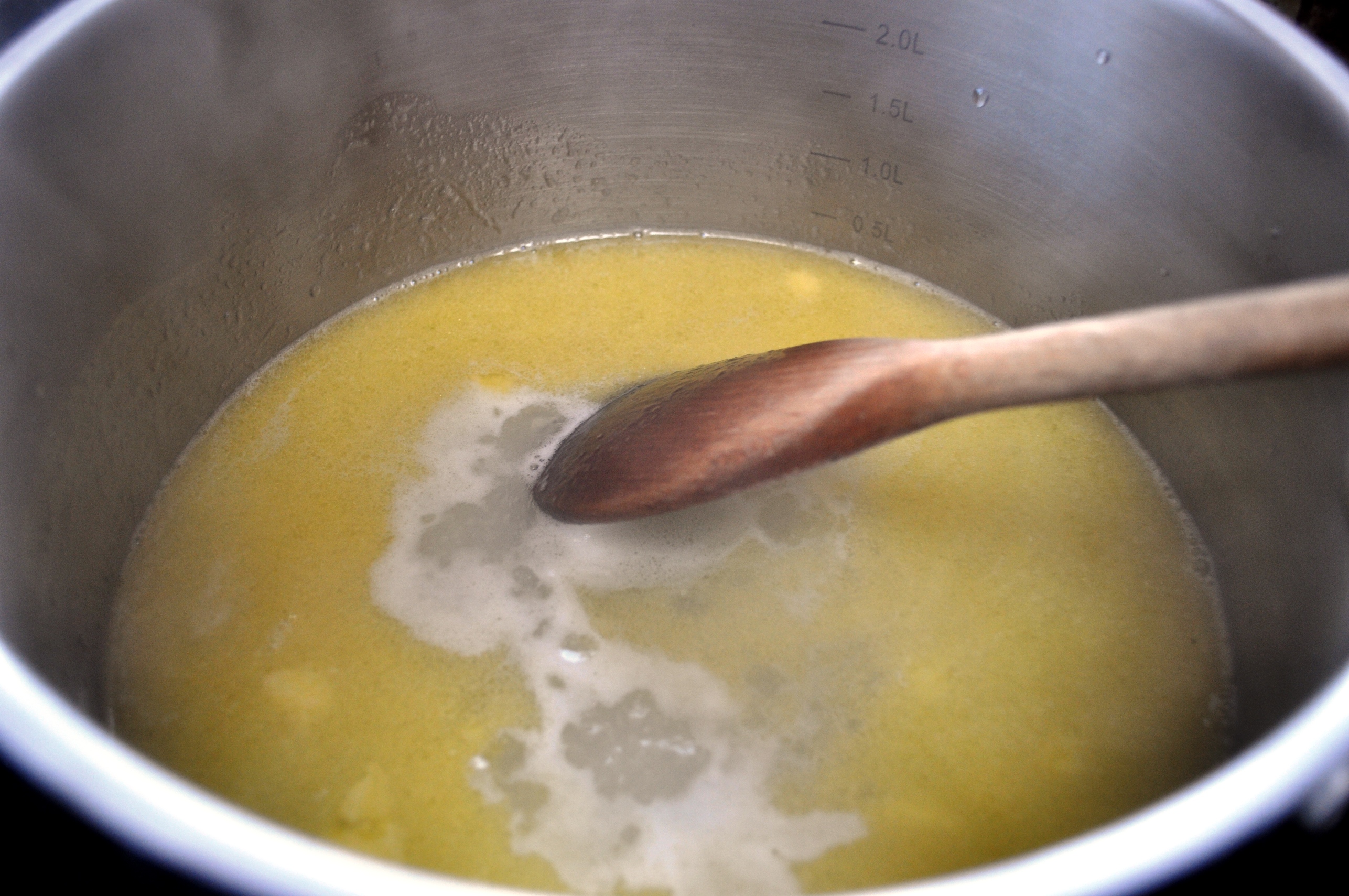 6. Allow the mixture to cool. If it’s too hot when you add the egg it will scramble.