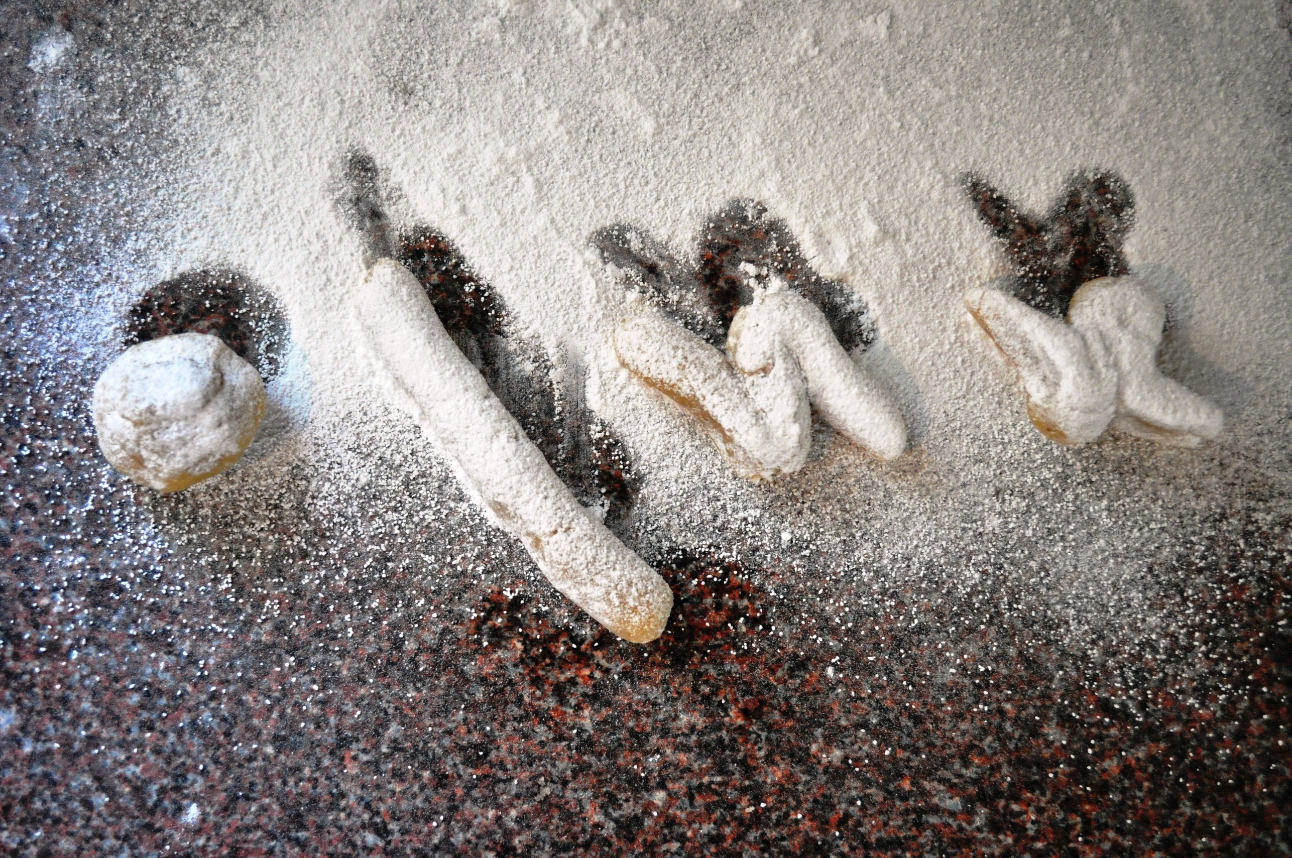 I scoured the internet for recipes, mostly in Italian. There seemed to be a some variation, notably in the question of what sort of almonds to use. Some used pre-ground almonds (or farina di mandorle – almond flour), some used blanched almonds that you then ground, others used skin-on almonds that you blanched and peeled yourself (a labour intensive job) before grinding, and others used skin-on almonds, ground as is.