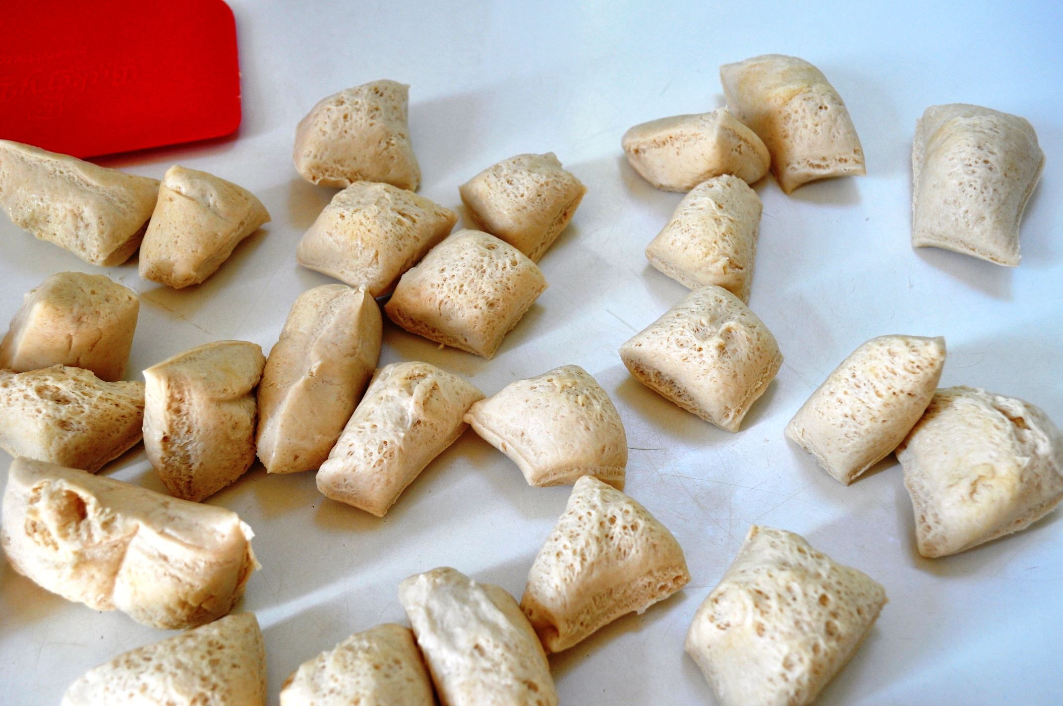 It should start to bubble – not like a fizzy drink of course, but you’ll see gas in the sludge and perhaps some foaminess. The smell will become slightly alcoholic too. If your leaven is nice and active and bubbly, it’s happy – so strain out the raisins, their work is done. You can now use some for baking. (Instead of straining out the raisins at this point, you can just soak them overnight at the start and use the liquid. Watch the video here on Viva La Foccacia. It’s in Italian, but even if you don’t understand, the process is clear.)