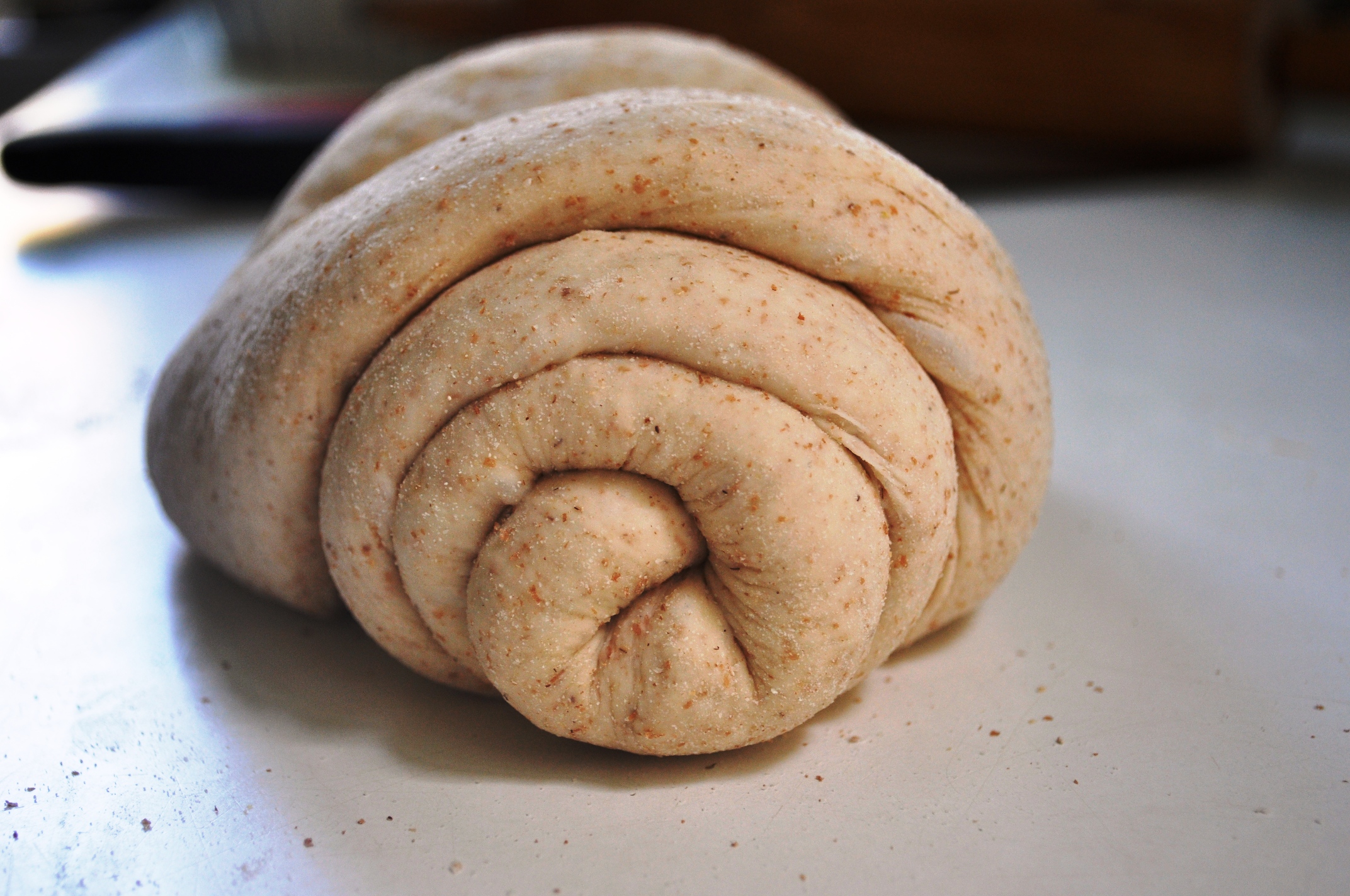 I still knead by hand, despite my recent acquisition of a cheap Aldi mixer. Handling the dough is just so fundamental to the pleasure of making bread. It’s primal. And probably qualifies as quite good stress relief. In short it’s a great activity to help deal with the madness of modern life. I follow a technique described by Australian master baker Dan Lepard in The Handmade Loaf. This was the book that really got me into bread-making a decade or so back. It’s a technique that shows you don’t have to be slavish to one big long knead, you can do short kneads at intervals.