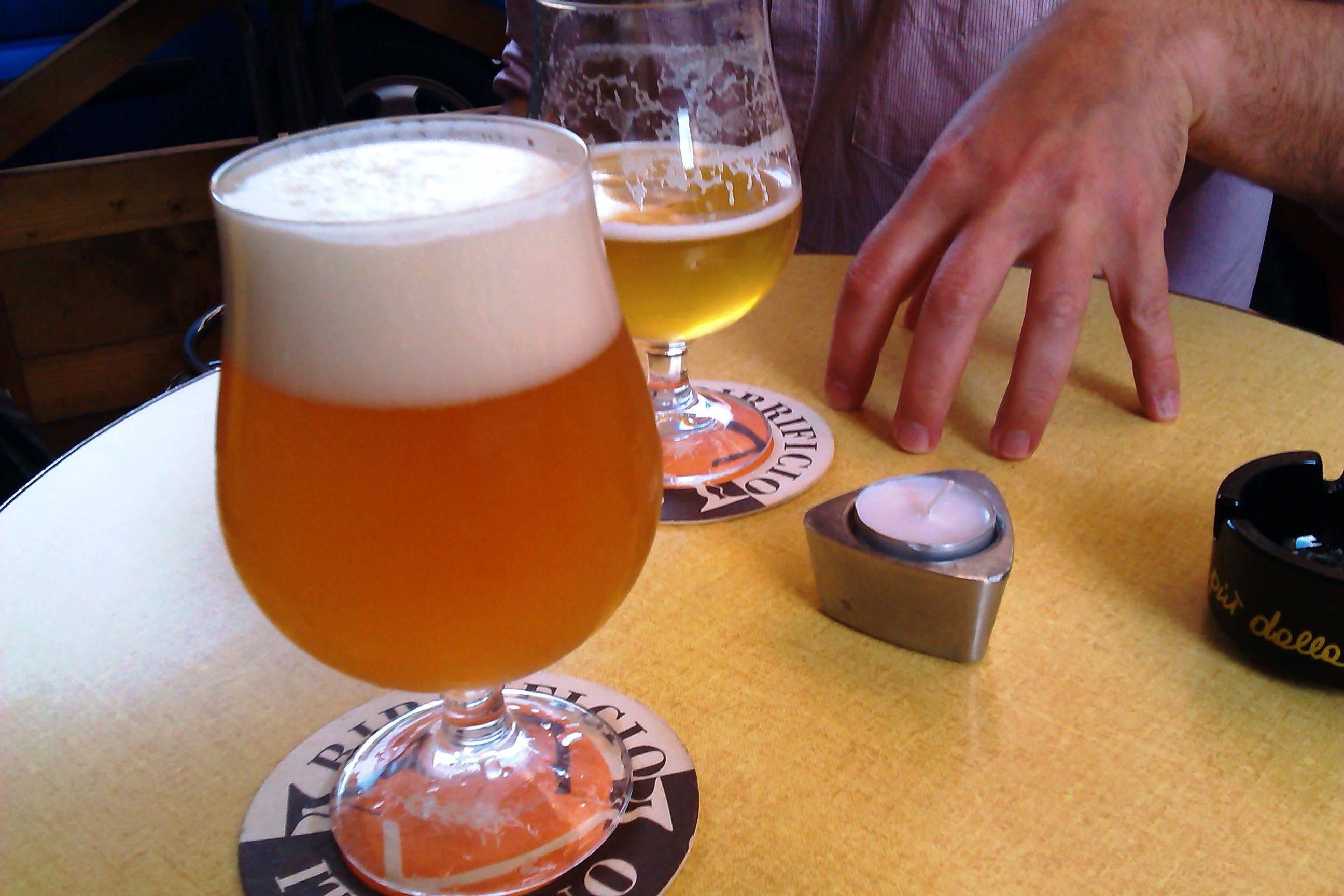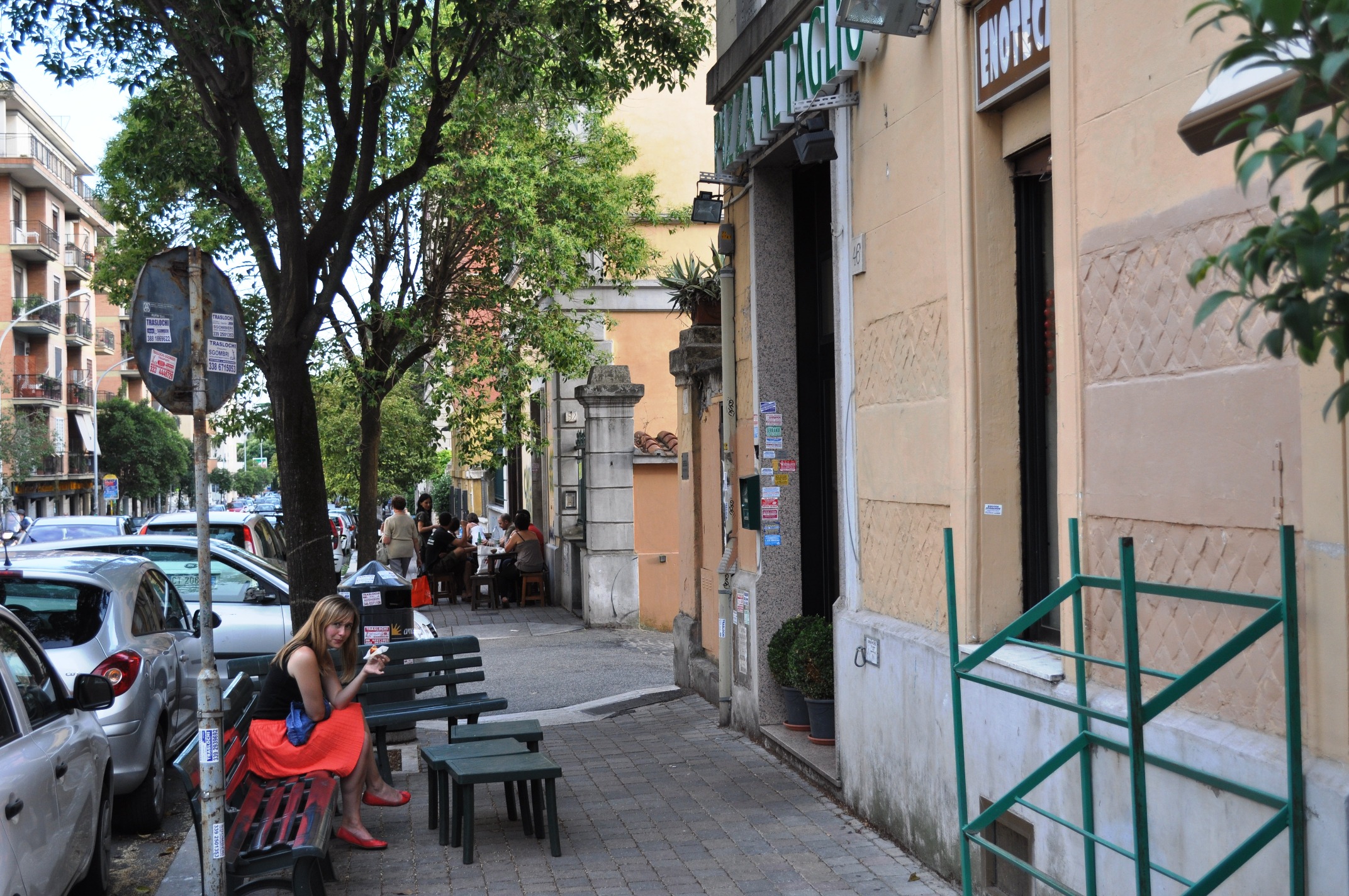 We were very bemused when we crossed the bridge, turned right (south) down a promising new stretch of asphalt, thinking it would take us towards the museum, but instead met another cyclist who said “It’s blocked”. So we turned around, went north, and found ourselves leaving the small stretch of new road, cycling through a building site, and emerging onto Via del Porto Fluviale. This is the location of the kinda-cool, kinda hit-and-miss Porto Fluviale, a beer bar and pizzeria that exemplifies the redevelopment going on in this area of Ostiense.